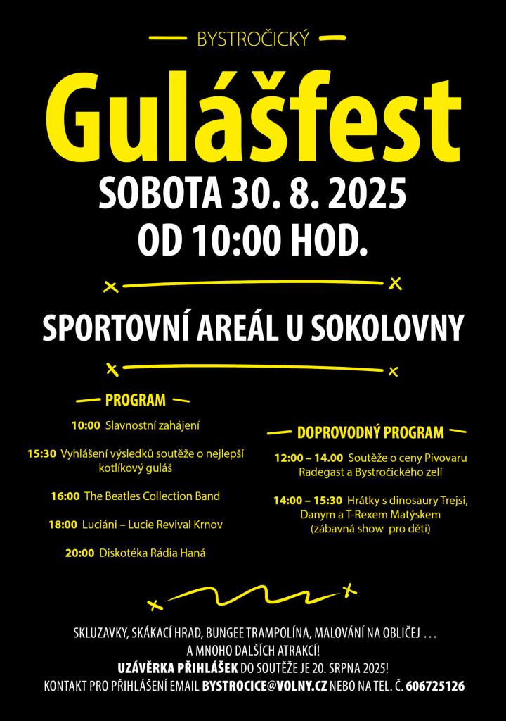 Srdečně Vás zveme další ročník Bystročického Gulášfestu - soutěže o nejlepší kotlíkový guláš.