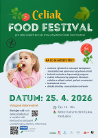 Celiak Food Festival je akce zaměřená na bezlepkovou a bezlaktózovou gastronomii a život s celiakií. Návštěvníci se mohou těšit na prezentaci výrobců a prodejců specializovaných potravin, inspiraci pro vaření a pečení bez lepku i doprovodný program včetně aktivit pro děti. Akce se uskuteční 25. dubna 2026 v Kulturním domě Dukla v Pardubicích.