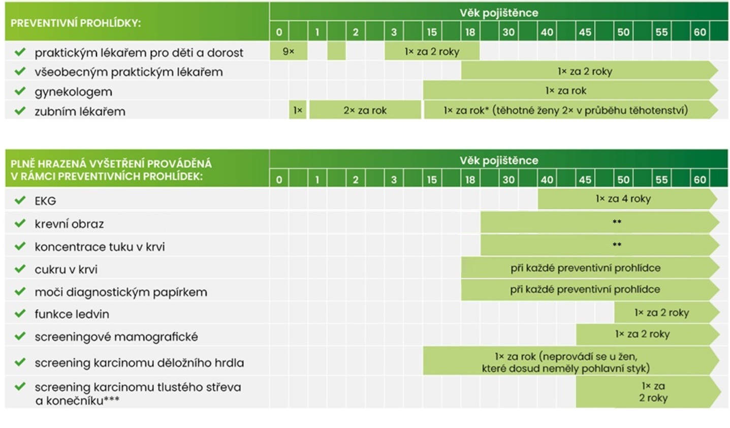 * plus 1x za rok další plně hrazená prohlídka (s odstupem alespoň 5 měsíců od preventivní prohlídky)